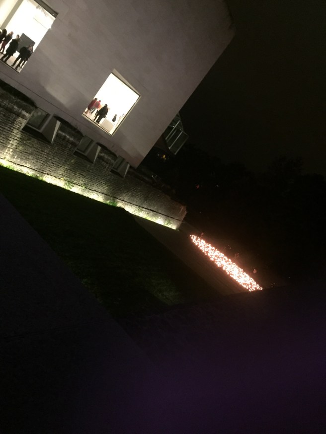 Via the Museum shuttle, we moved to Mudam. We assisted to a sound performance with sewing machines, visited the “Eppur si muove” exhibition and admire the candles installation outside the venue.