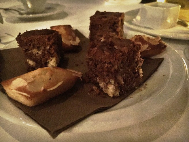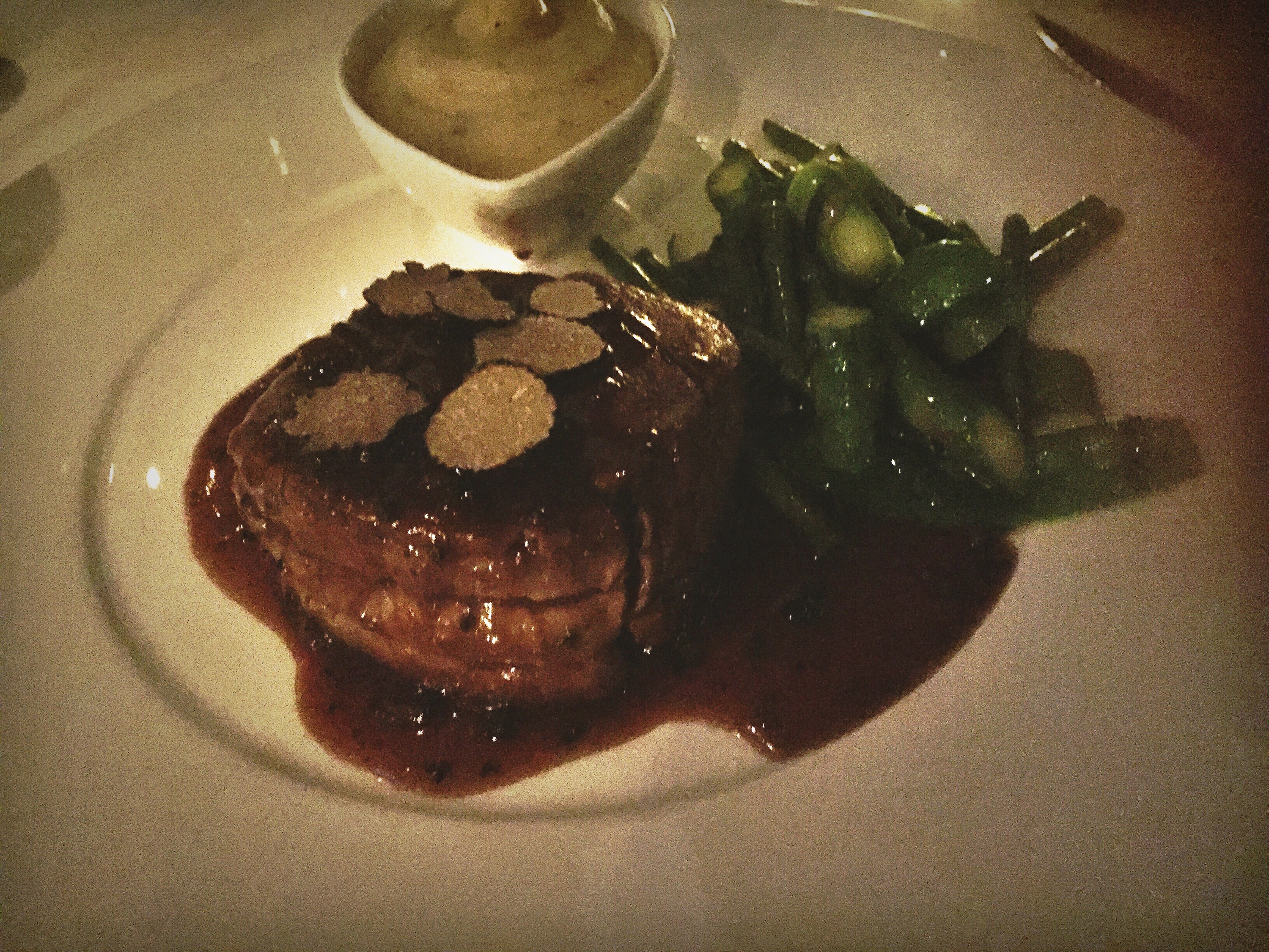 My main course was classically good: the meat was outstanding, perfectly cooked. I loved the al dente green vegetables and the truffle pure’ was yummy – I would have eaten a bigger portion indeed. The only unfavorable point was the wine sauce on the meat – too sweetish for my taste.