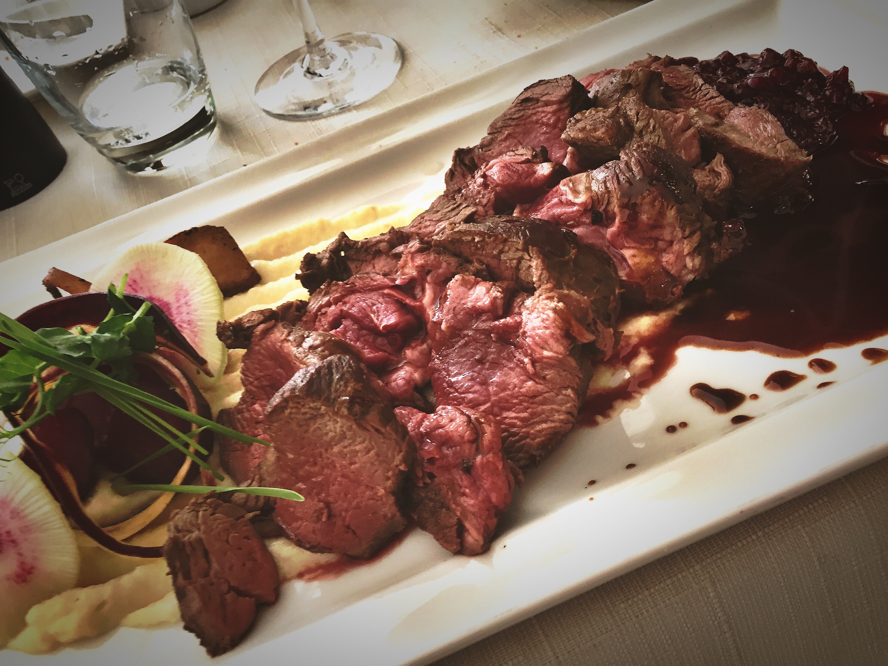 We had a side table facing the street and, after a cremant aperitif accompanied by some focaccia canapé, we received a Saint Jacques amouse-bouche. I went for a poached egg with  potatoes pancake and truffle while hubby had foie gras and then we continued with rack of doe for two. We had half bottle of red wine and two coffees for a total bill of 127 euro (2 cremant, half bottle of wine, two starters, two mains, two espresso, half water)..