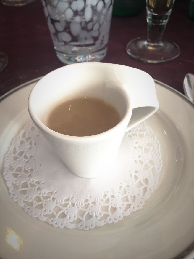 We opted for two mixed Italian starter for 2, with cold cuts, cheese, marinated vegetables, jams and honey to share between the two couples, followed by a main dish of pasta each. We asked for the list of wine that arrived together with a asparagus cappuccino with truffle, – tasty.