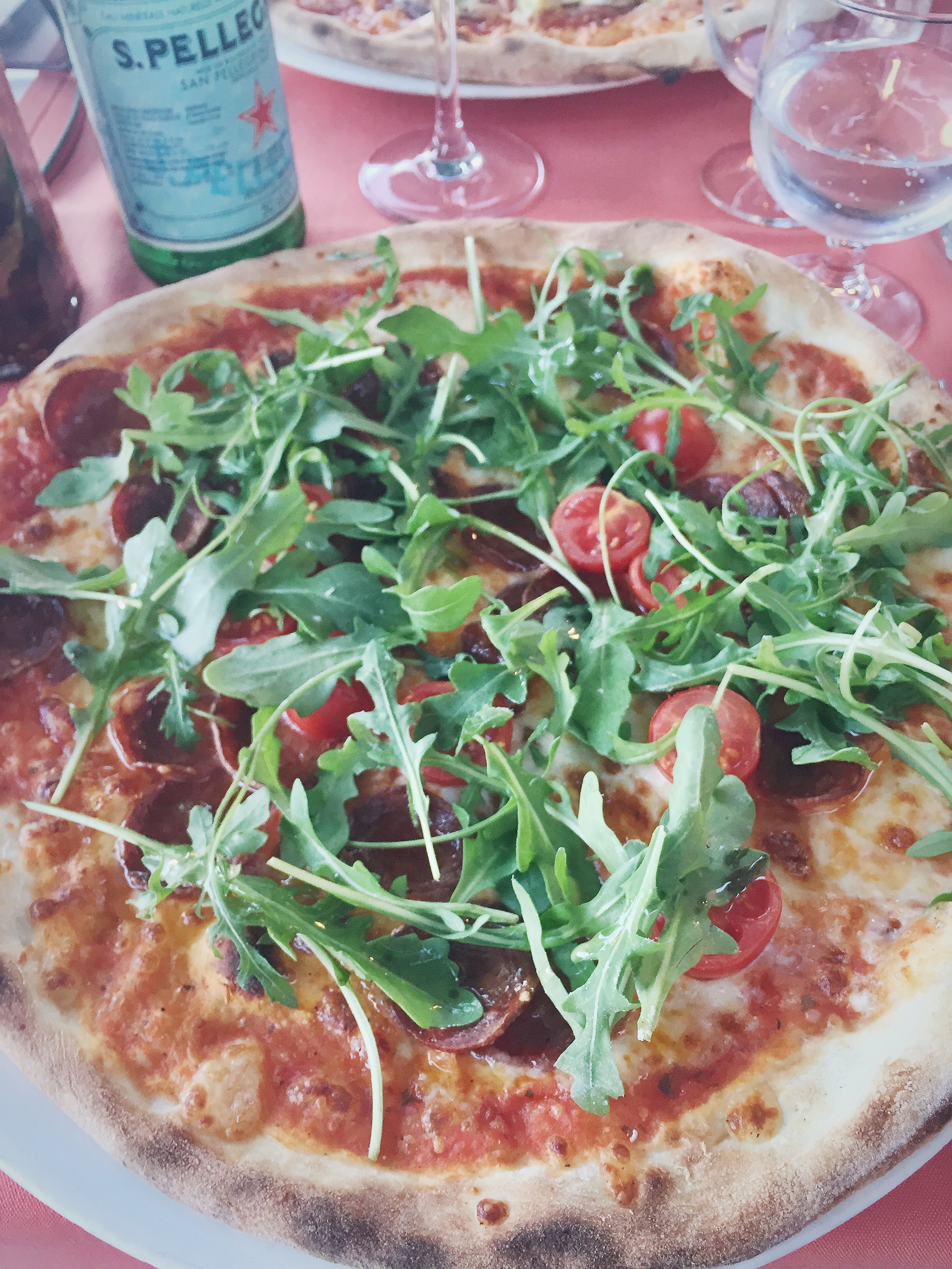 We had some water and diet coke and after a while ordered our pizzas – I went for a Carrettiera – with spicy salami, cherry tomatoes and arugula – while hubby when for a Capricciosa and a glass of Primitivo wine.