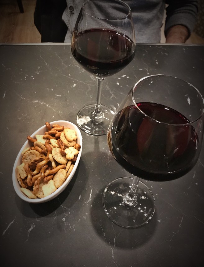 The menu out of the meals’ hours reads several kind of drinks and some snacks. We started ordering two glasses of Montepulciano, followed by a charcuterie platter, a wine refill and a further platter of cheese.