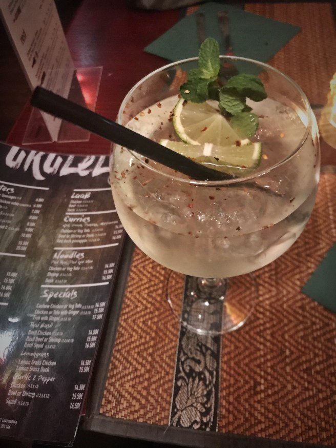 - While you could not expect to pay the same price you would in Thailand – in Bangkok, I probably had the same dinner for the equivalent of 17 euros and my Thai colleagues were complaining about the fact it was a rather expensive place – Ukelele is fairly priced, with main around 15 euros. We had basically everything (Gin Tonic to start, a shared platter of starters, two main, a good bottle of wine, coffee and cognac) and we spent a bit more than 100 Eur.