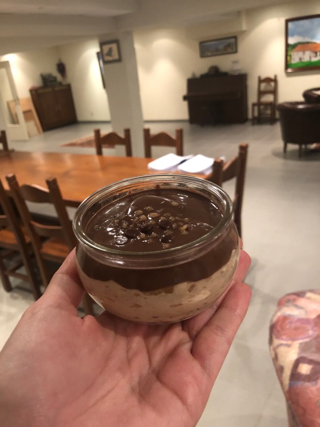 As main, we had a typical dish from Apulia, orecchiette prepared with cime di rapa (a South Italian variety of broccoli), anchovies and crumbs of taralli. Finally, we concluded our dinner with a cheesecake in a glass. I chose the one with hazelnut.