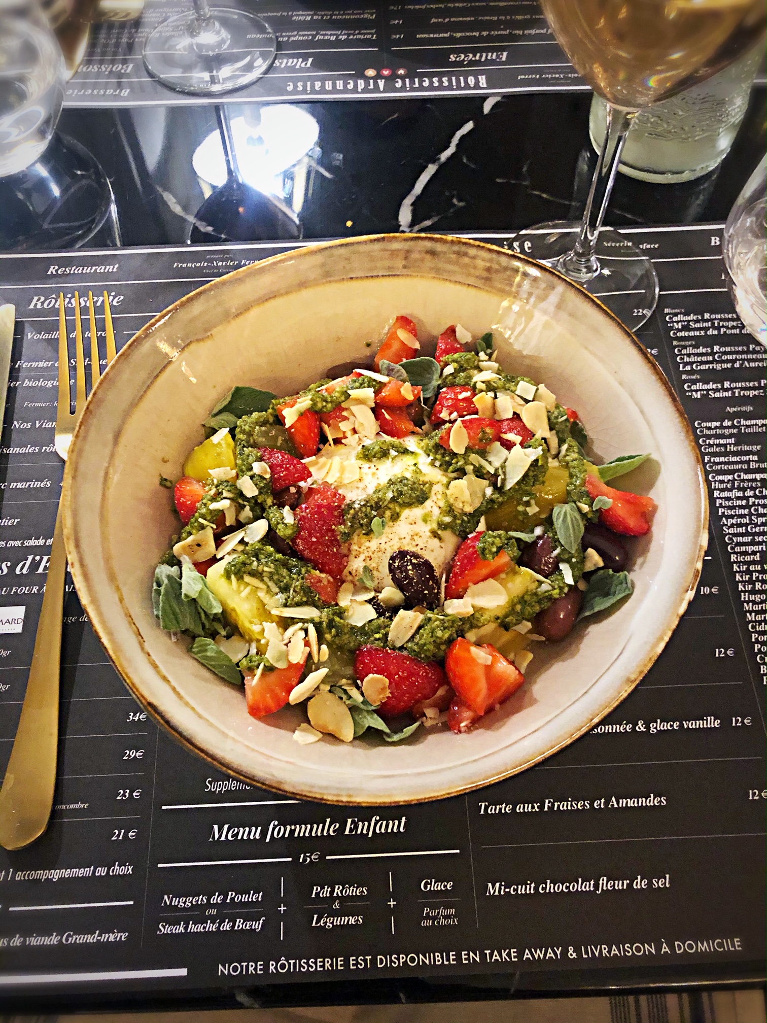 - Food was delicious: we understood our dinner was going to be very tasty from the amuse bouche. Generally I pretty much dislike everything which is proposed as amuse bouche in restaurants, this time it was extremely good. The burrata salad, prepared with almonds and strawberry, was the best starter and my pigeon was to die for. Pigeon is one of my favorite dish and I tend to be extremely critical – this one was amazing, and was accompanied by beans with bacon and his juice.