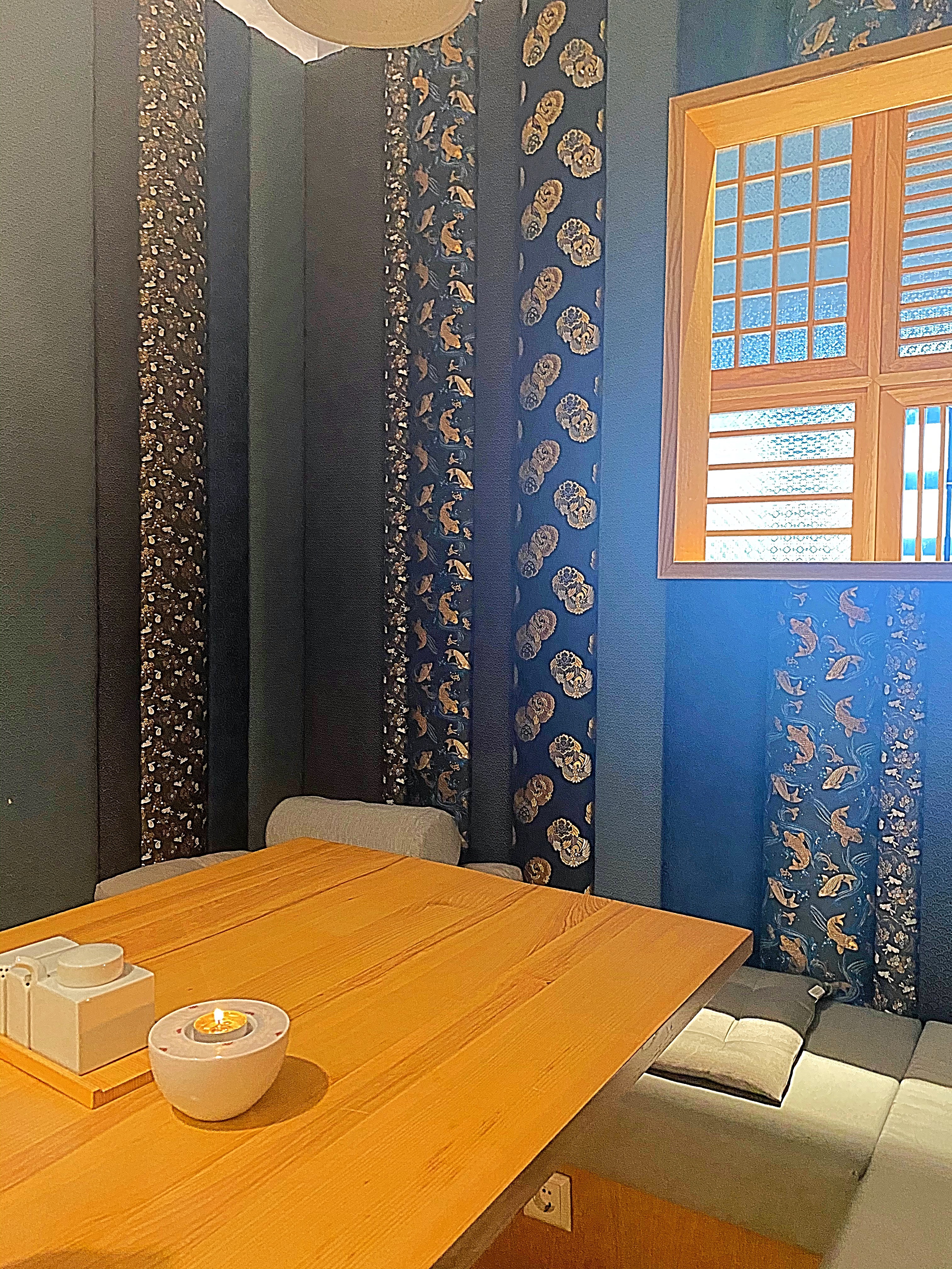 Nonbe is located in Belval, 10 minutes’ walk from the railway station, in a pretty anonym area of residential buildings. There is a brasserie downstairs, which serves dishes a la carte, including sushi. The spaces of the brasserie are bright, with wide windows and a clean wood counter. There is also a small terrace on the back.
