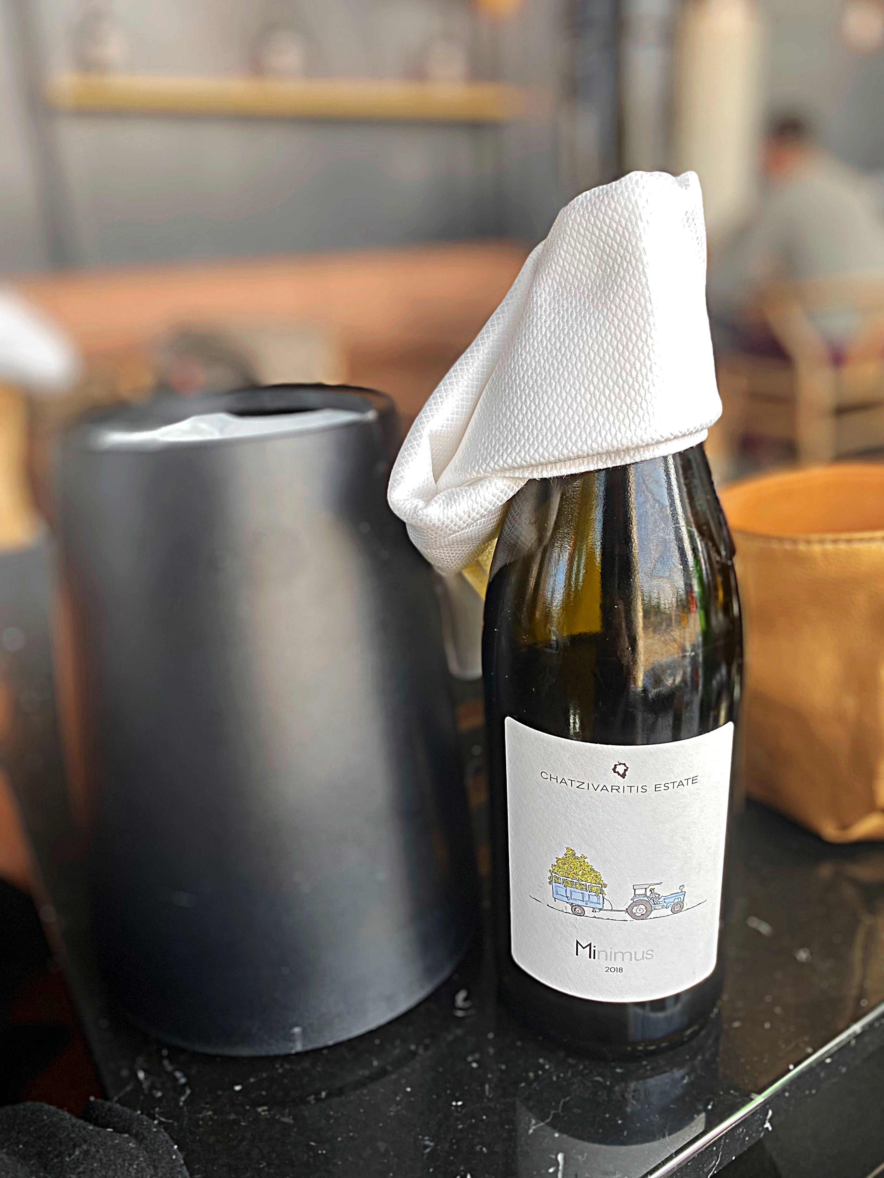 With the lunch we also had a bottle of Greek white wine, which was mineral and light, very enjoyable. The wine list is 90% about Greek wines, with very few French and Italian bottles. Prices per bottle are fair, starting 25 euro and mostly around 50 Eur, with some isolated peaks at 100 Eur.