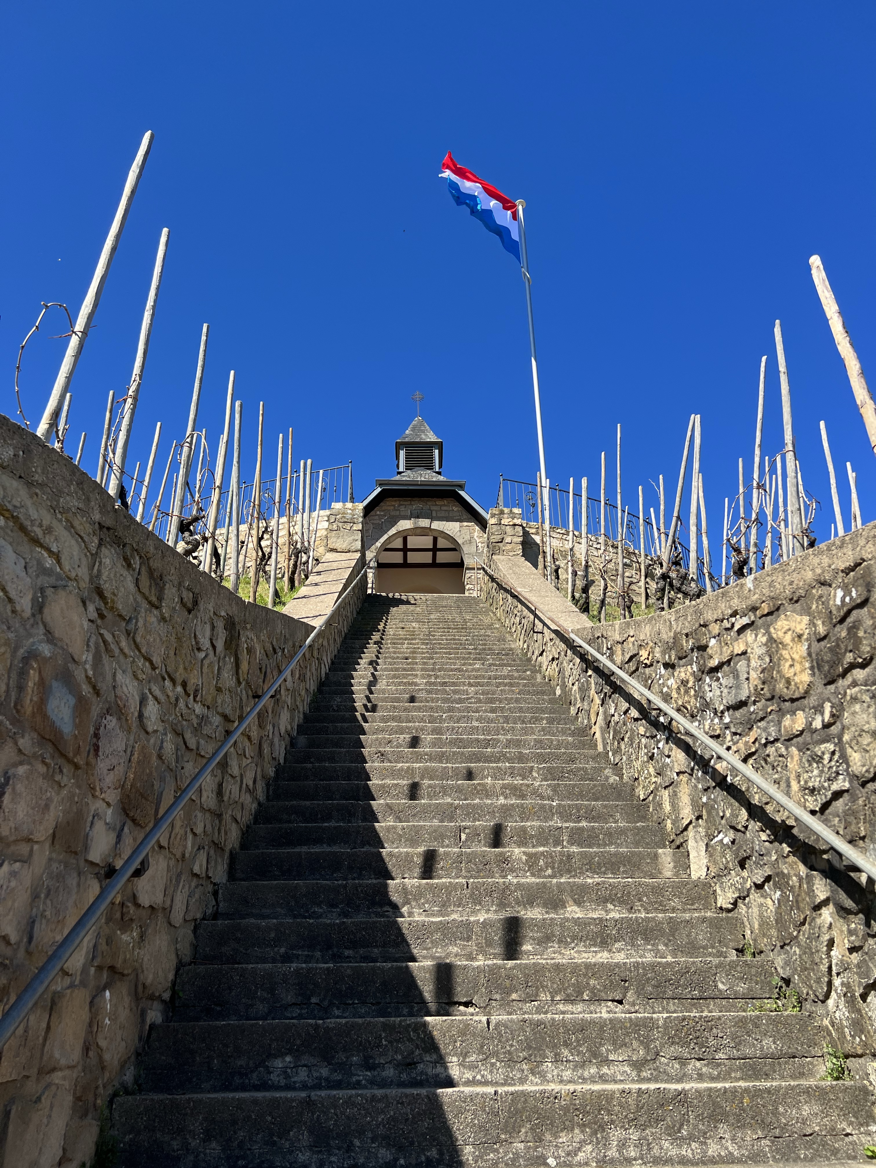 Couple of week-ends ago, we had a day trip on the Mosel, where we hiked up to the chapel in the middle of the vineyards, in Worlmendange.
