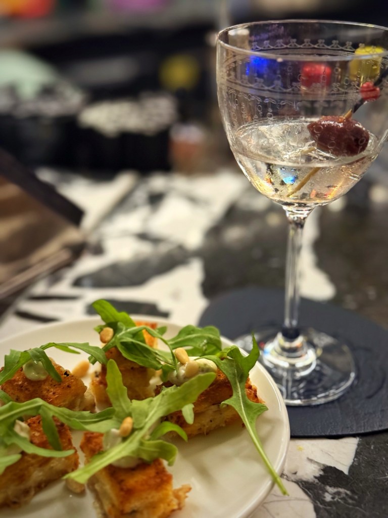 We were welcomed with live music from a talented acoustic duo, creating the perfect backdrop as we sipped on cocktails. My go-to? Always a Dirty Martini—and theirs didn’t disappoint.