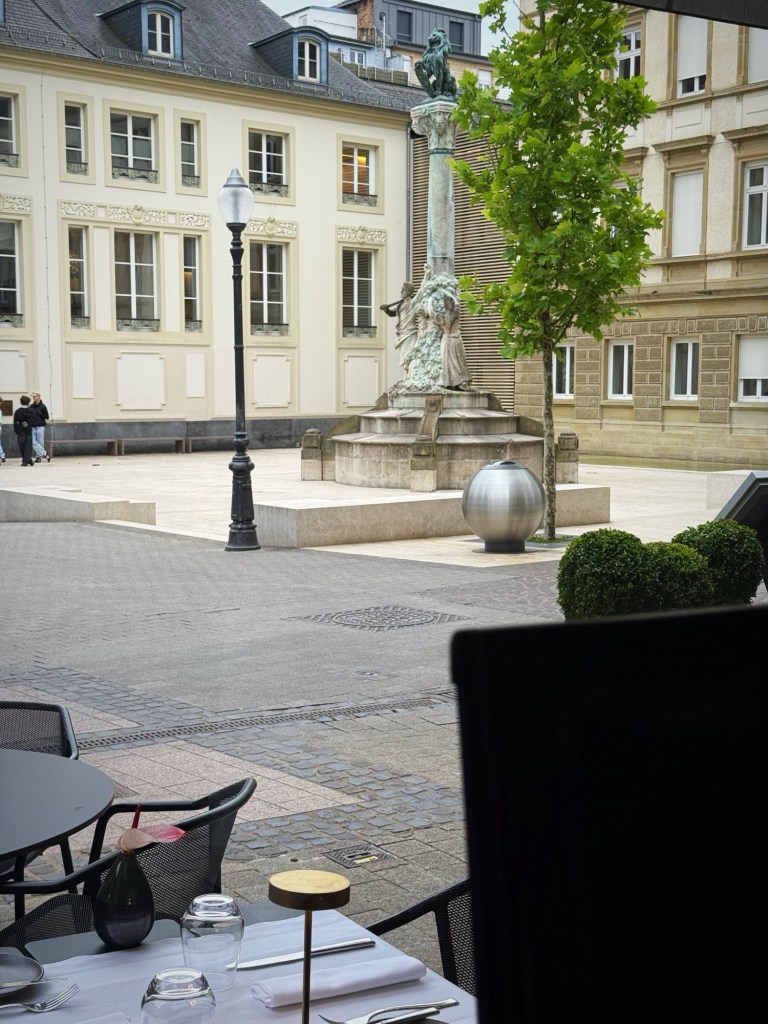 At around 7:45 PM, the music transitioned to Plëss restaurant, where our table overlooked Place d’Armes. Despite the cloudy skies, the ambiance—enhanced by the live performance—felt almost cinematic.