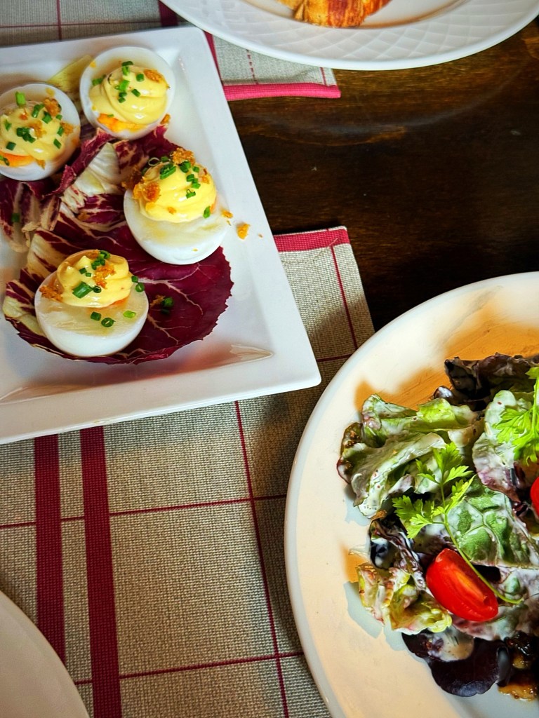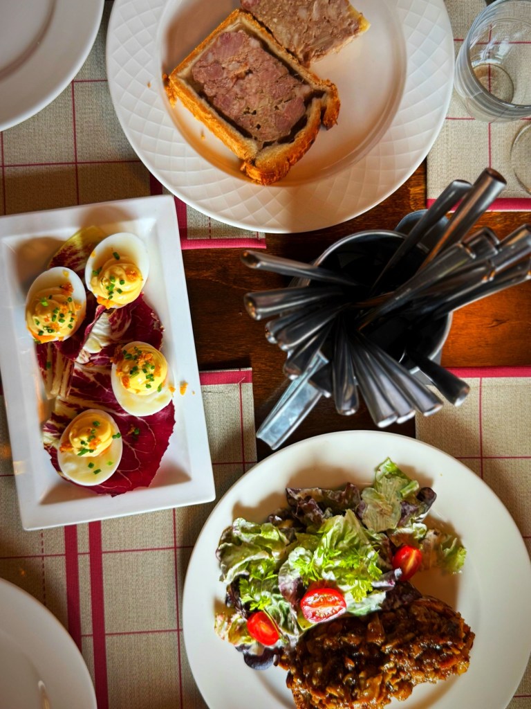 We began with a few shared starters: the terrine, the tartine de pied de cochon, and the deviled eggs. The tartine was my personal favourite—rich and satisfying—with the beautiful house-made pickles on the side adding a perfect touch of brightness and acidity.