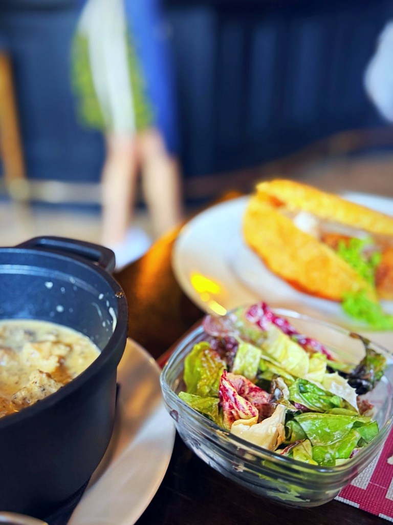 Even though we were full, dessert was non-negotiable. We chose the baba au rhum, and it did not disappoint—soft, boozy, and served with a cream so good it deserves an award of its own.