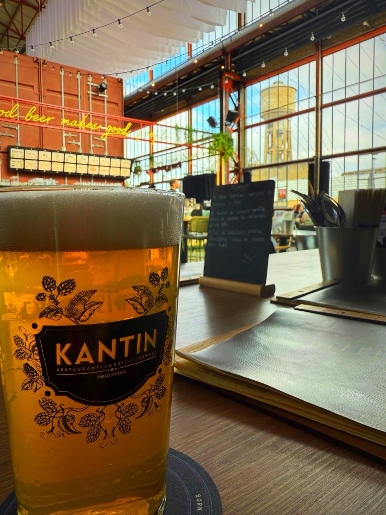 Set inside a reimagined industrial site in Dudelange, where the old water tower still stands proud, Kantin is minimal design with maximum soul. They brew their own beer — get the Diddelenger Pils, no questions asked — and the vibe is an effortless mix of concrete, craft, and creativity. You come for the atmosphere. You stay for the taste.