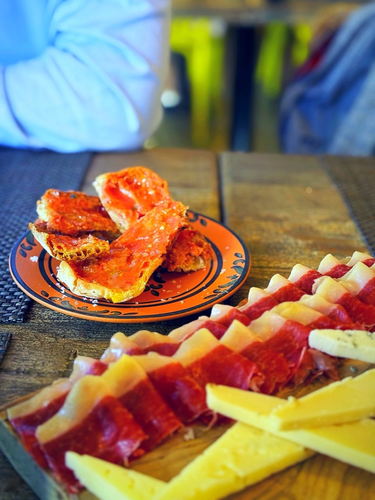 We started with a house cocktail and a non-alcoholic sangria, both full of sunshine. Then came the classics: jamón, queso, and pan de tomate — and listen, that pan de tomate deserves its own fan club. Crunchy, juicy, and unapologetically drenched in olive oil that actually tastes like olive oil.