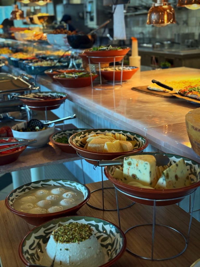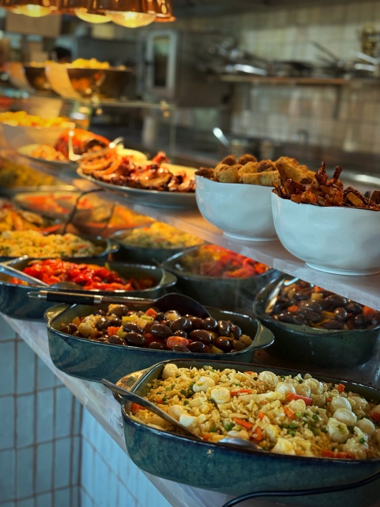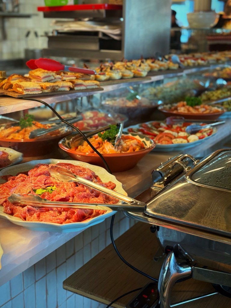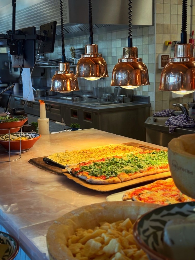 Think pancetta, fresh fish cous cous, panzerotti, cheese, grilled vegetables, truffle risotto, and other Italian specialities. There’s plenty of choice, the quality is there, and everyone at the table can find something they genuinely enjoy.