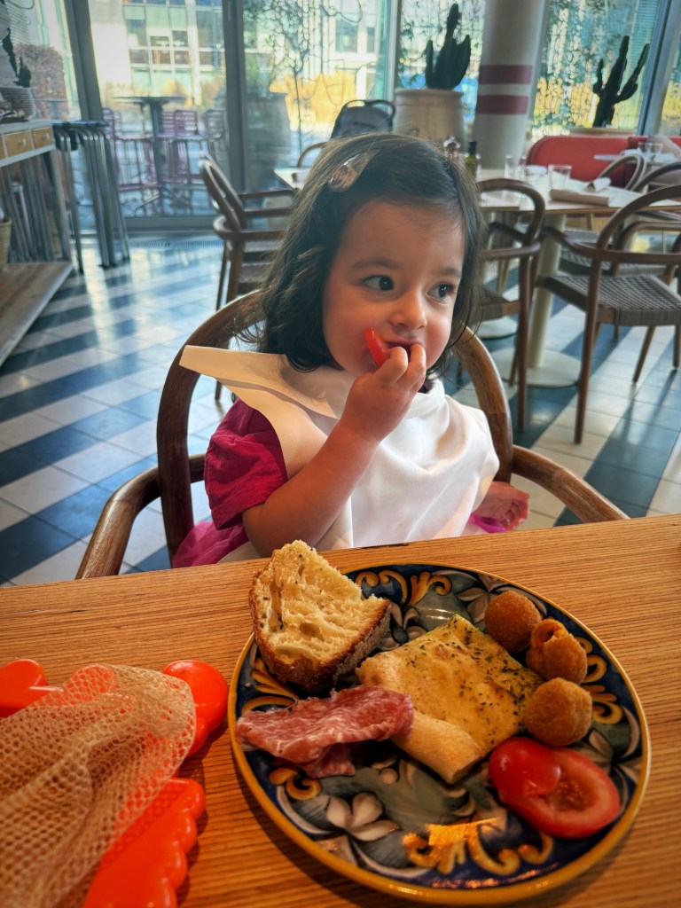 Ceruzzi has a dedicated open room for kids, with toys and space to play. I asked for a table just next to it, so Clara could go in and out freely while I kept an eye on her. She played happily, unsupervised, and I could actually sit down, eat and relax.